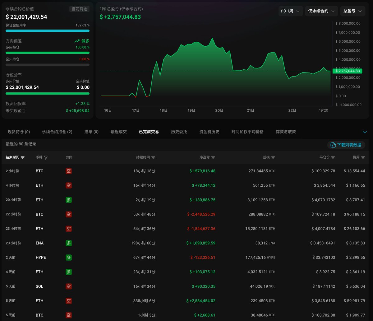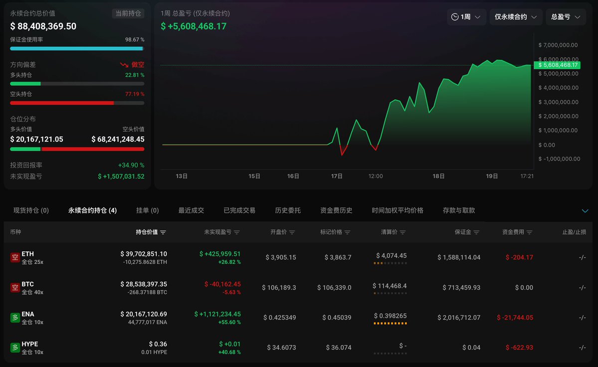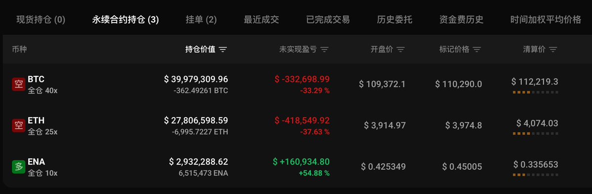 昨晚他一弄操作,将 $BTC 和 $ETH 的空单加上去了