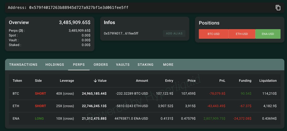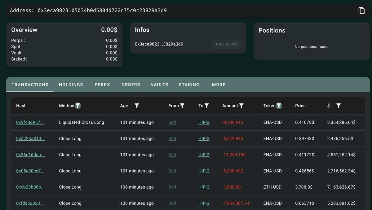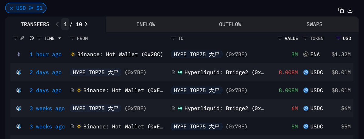 昨日加仓 $HYPE 的 TOP36 大户今天又在加仓 $ENA 了🤨