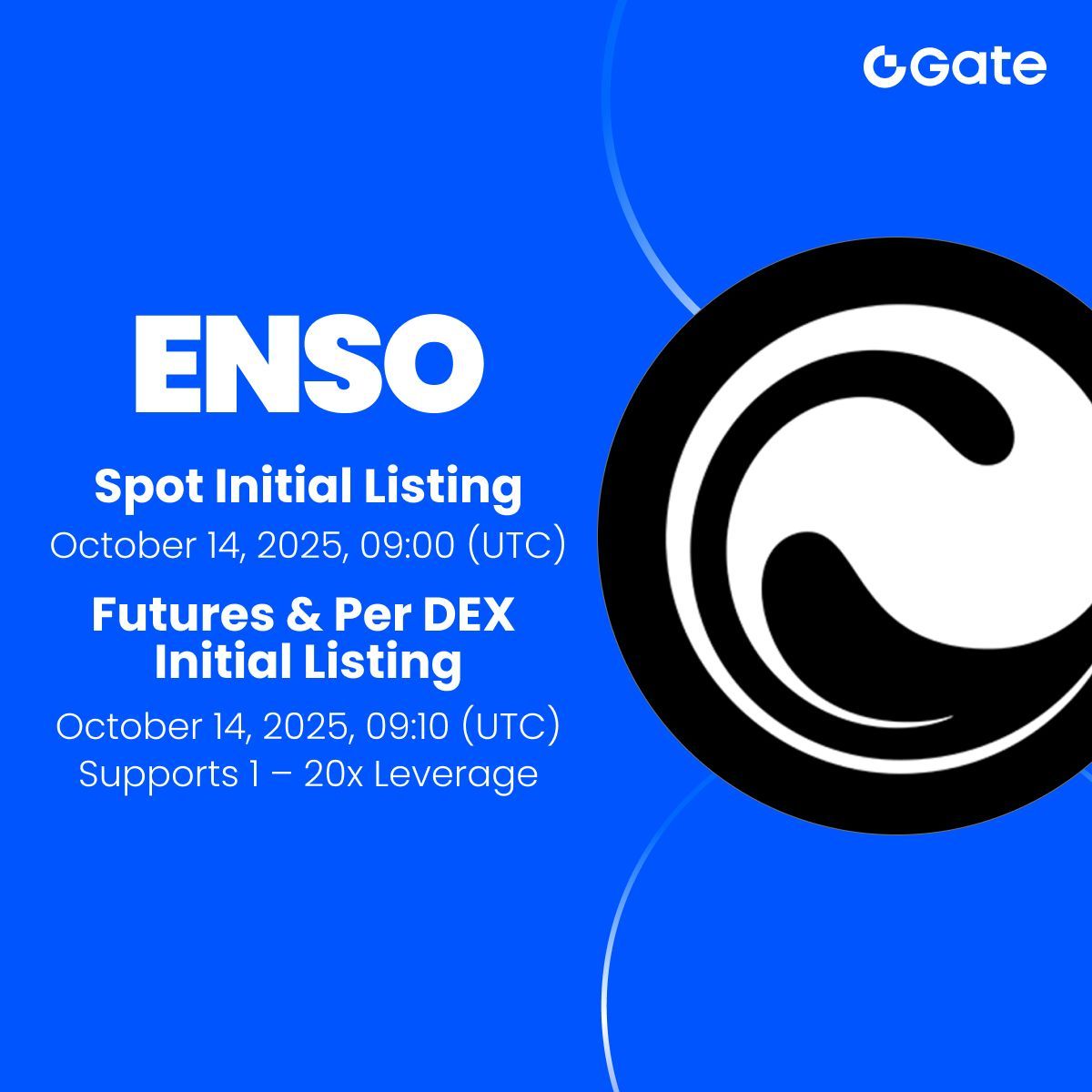 Gate 现货、期货和 Perp DEX 初始上市:$ENSO / $USDT @EnsoBuild 🔹现货交易开始:10月14日上午09:00(UTC) 贸易: 🔹 期货和 Perp DEX 交易开始:10 月 14 日上午 09:10(UTC) 🔹 以高达 20 倍的杠杆进行多头或空头交易 期货