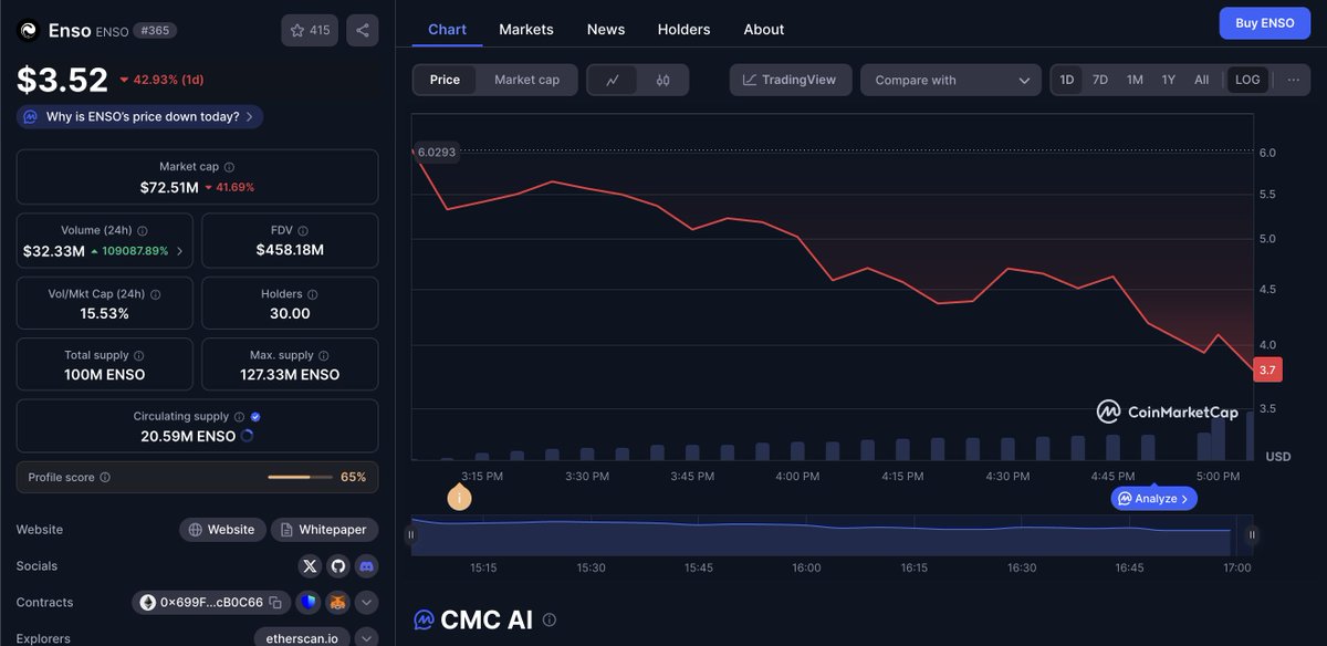 $ENSO 在 Upbit 上市后一小时内上涨 30.7%。