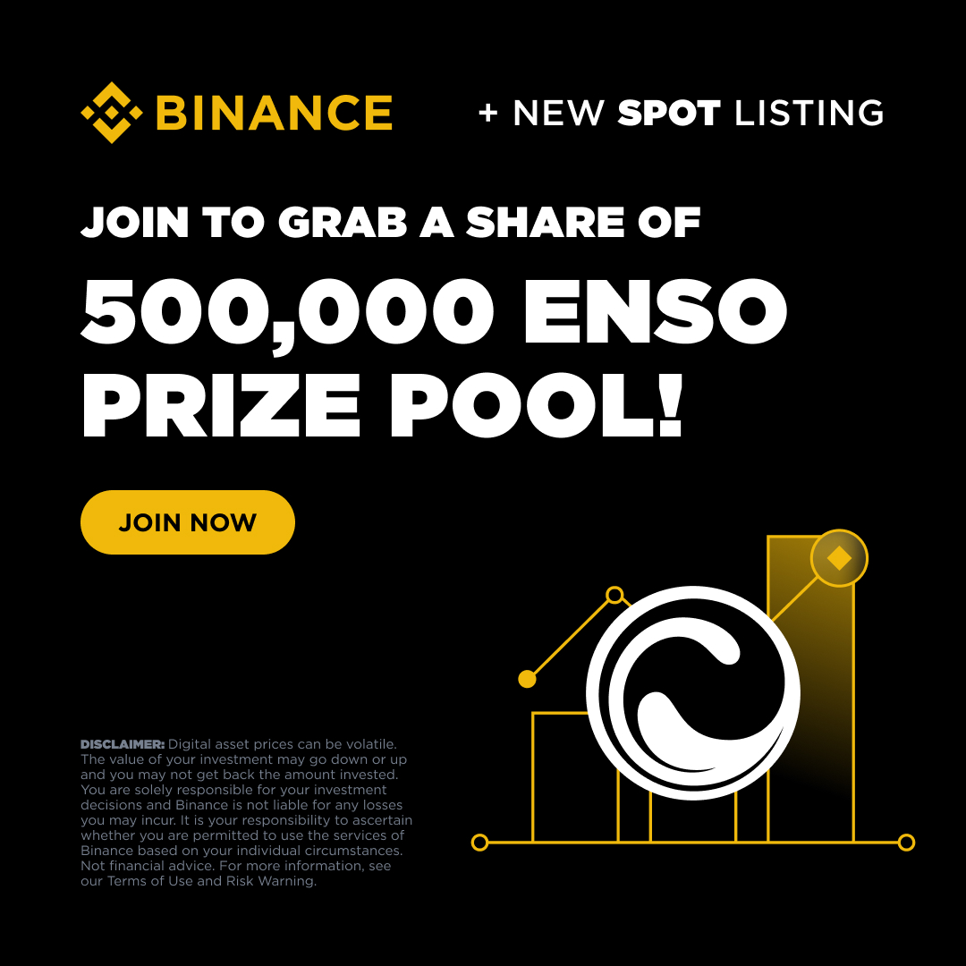 Enso @EnsoBuild 现已在 Binance Spot 上提供。 总共 500,000 张 $ENSO 代币代金券等你来赢取! 了解更多👉