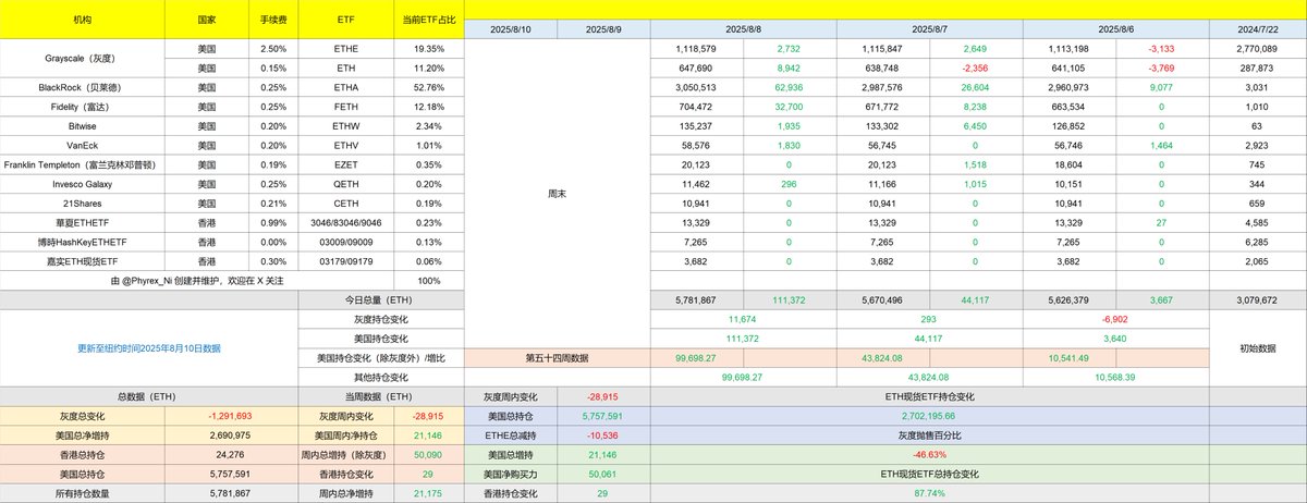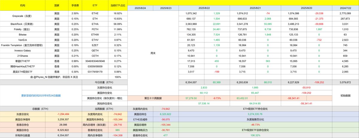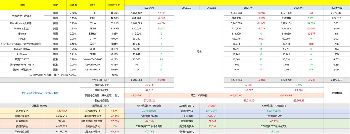 贝莱德和富达都是增持的主力,除了灰度有75枚ETH的抛售以外,其它就没有了,但我看了下 $ETHA 的成交仍然还没有回到巅峰状态,昨天的成交量也就是勉强及格,看看接下来 ETH 会不会趁着九月降息再爆发一次。