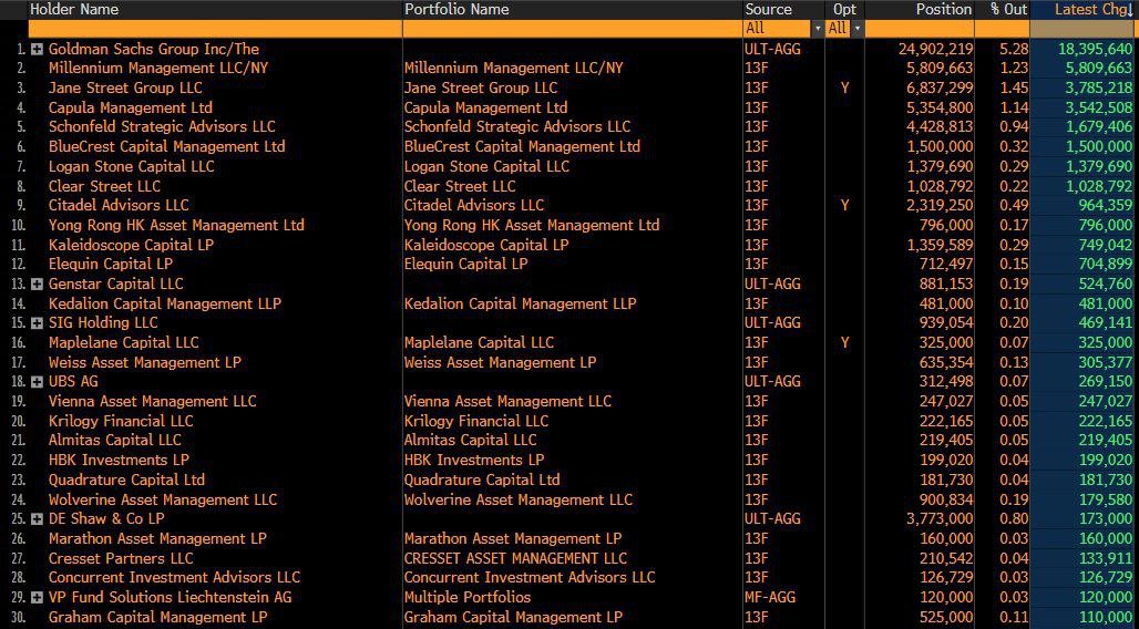 确实币股的买入量也不错,但和贝莱德相比还是少了点,就像是 $IBIT 买入的 $BTC 超过 $MSTR 是一个道理。