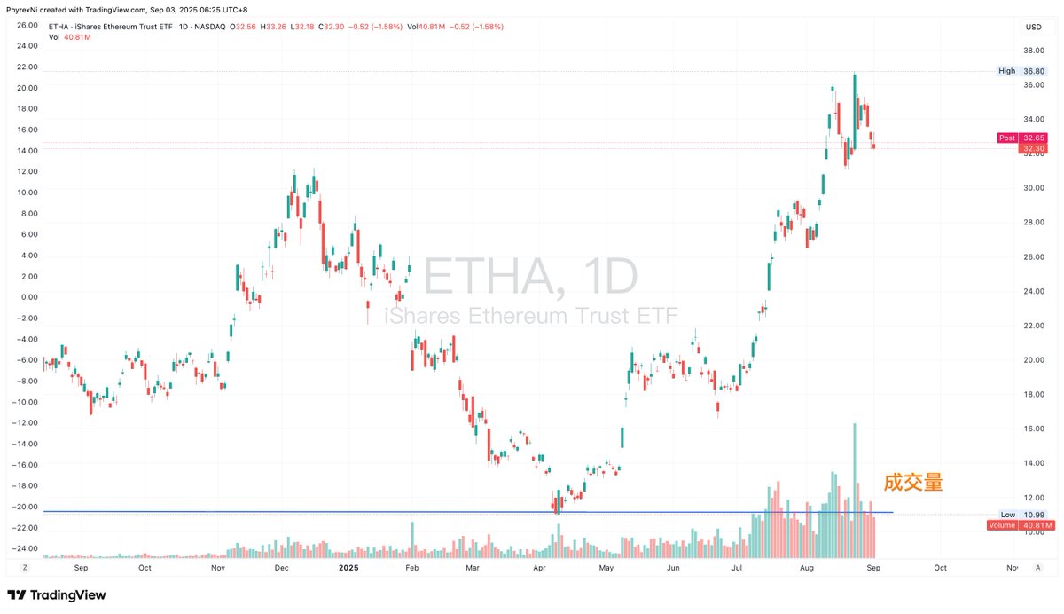 贝莱德ETH现货ETF $ETHA 的价格走势和成交量