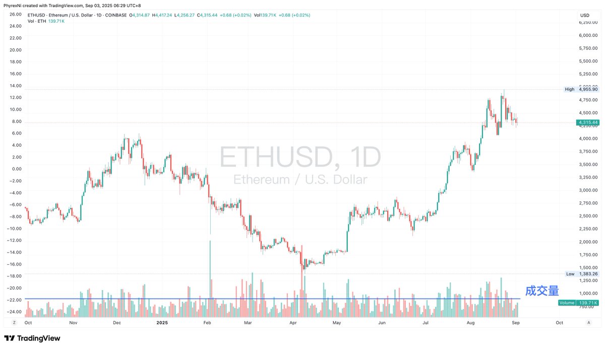 最近一周 SBET 并没有新买入 ETH 作为储备,不过 BMNR 却继续买入了超过 20万 枚ETH,总存量超过了200万枚,这个数量已经超过了灰度持仓的 ETH 数量,仅次于贝莱德的366万枚。不过 BMNR 和 MSTR 这种大体量的购买基本都是通过 OTC 市场买入的,对于现货价格的影响并不大。