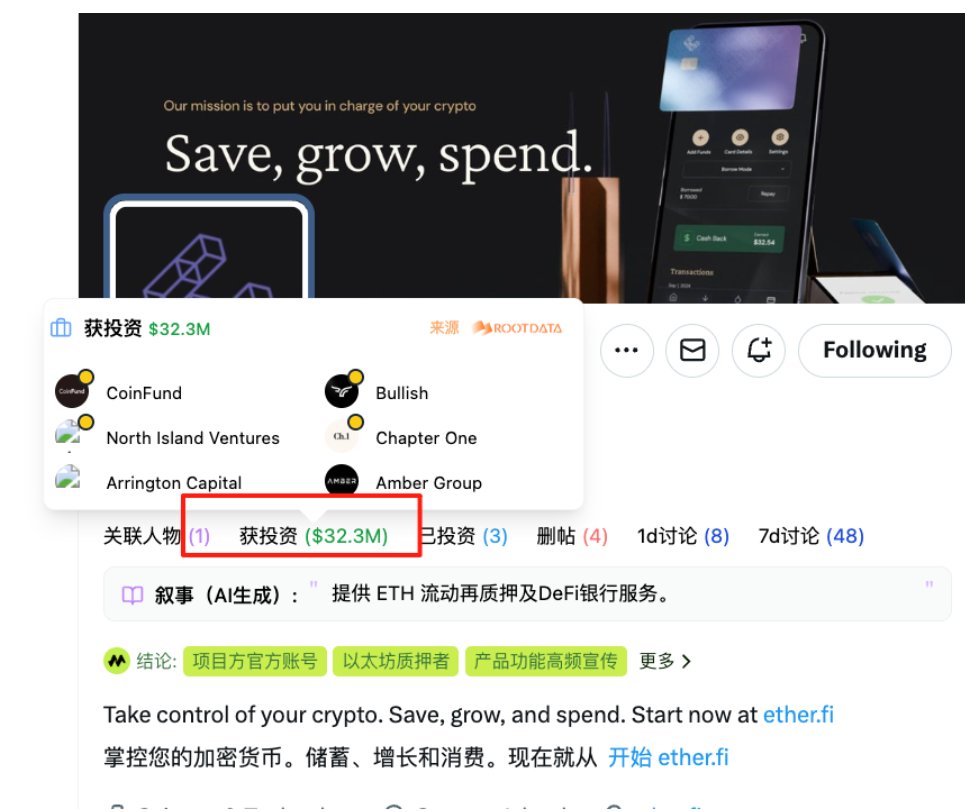 他目前共持有 201.3 万枚 ETHFI,总价值 328 万美元,是链上 TOP5 资产;钱包地址