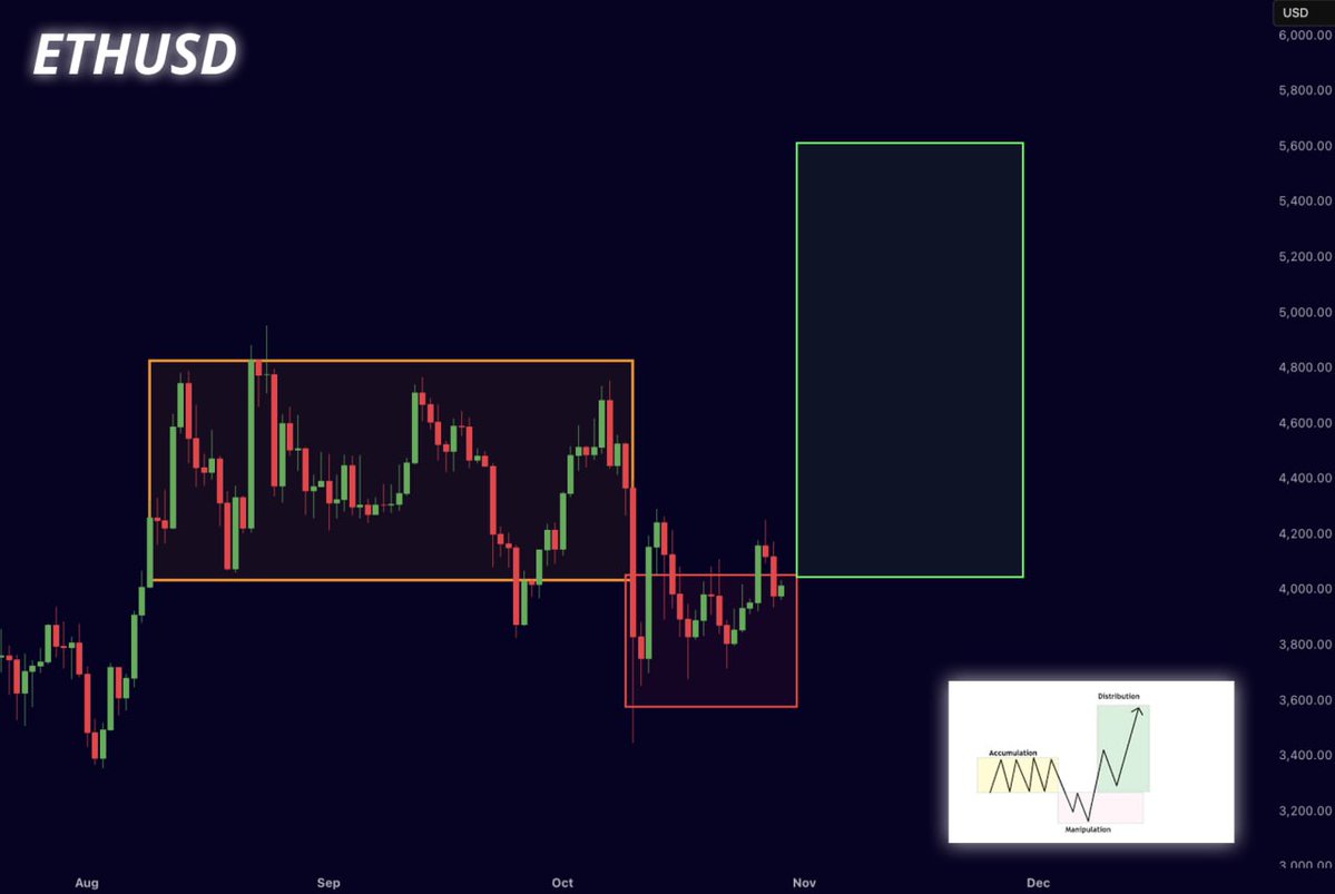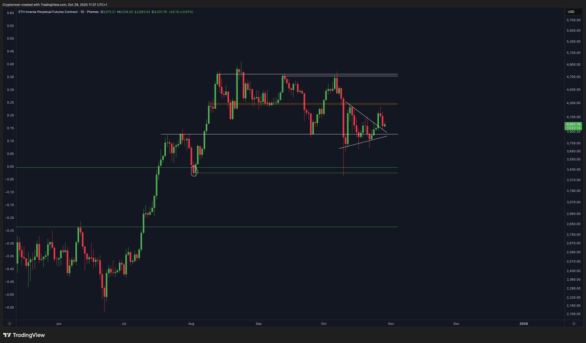 $ETH 看盘面的话,上方潜在阻力应该是放到 4030 做区间震荡了。