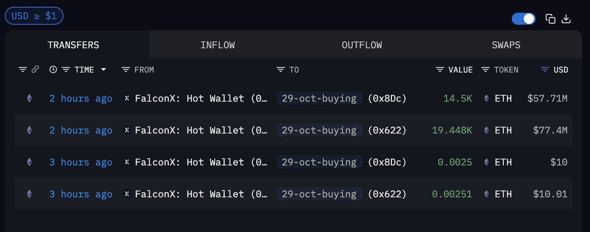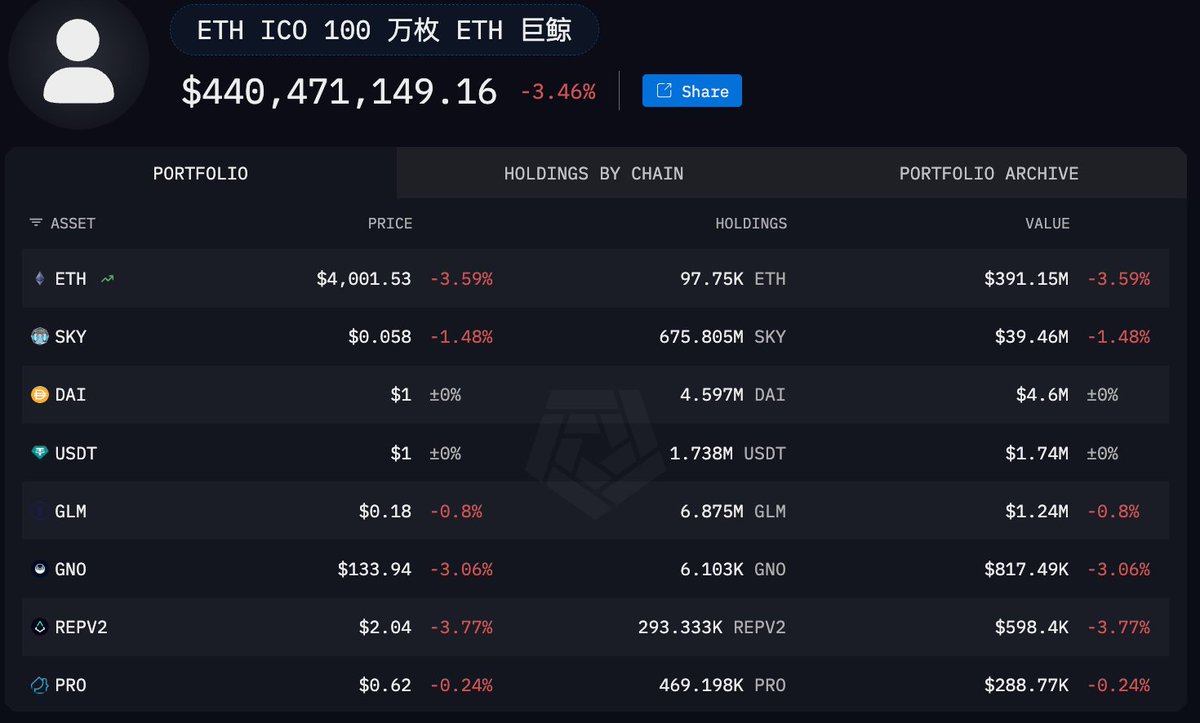 2025 年以来已累计卖出 30300 ETH,总价值 9936 万美元,平均卖出价格 $3279,目前链上仍持有 97750 ETH(3.91 亿美元);钱包地址 https://t.co/pkH30wlyp6