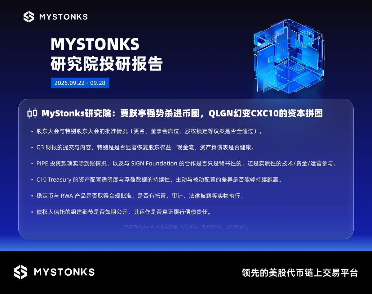当然,风险也不少:Q3 财报能不能修复股东权益?PIPE 的钱能不能全到账?稳定币和 RWA 合规怎么过?都是接下来要盯的关键点。