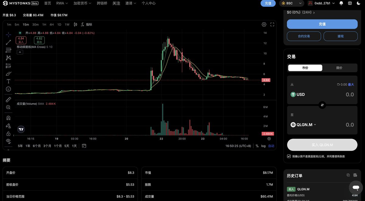 想想看,原本 QLGN 这票市值不到 500 万,日成交 20–30 万美金,如今一夜之间被注入几十倍资金,叙事直接从“退市边缘”拉到“币圈新贵”。