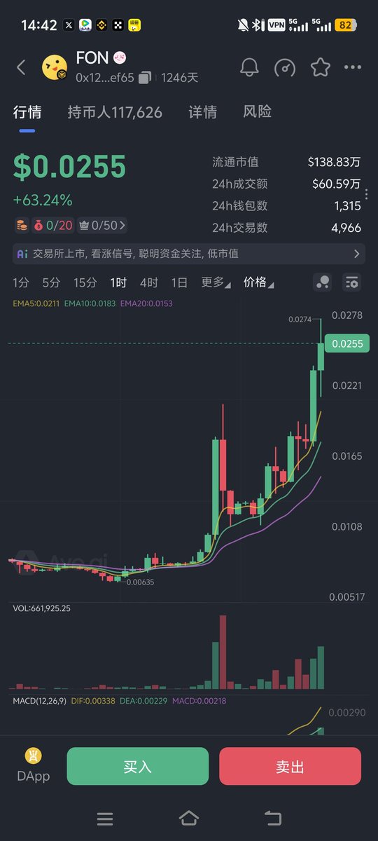 $fon 目前已经6倍,地推大佬陆续在全国各地工作室布局。fon会短期突破0.1,继续,继续。