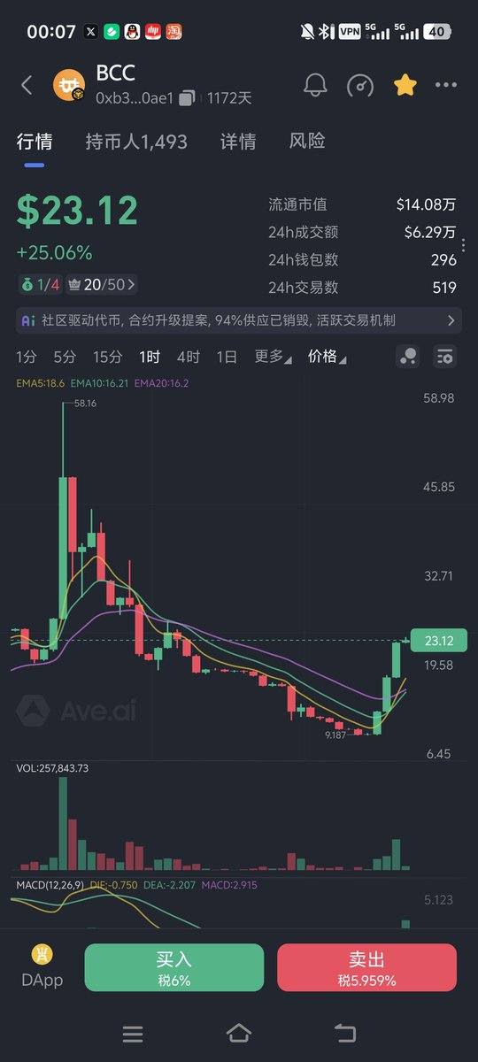 然后你吗那都150万跌到20多万了,我割肉也没毛病啊,我寻思肯定完蛋了,然后它几把又涨起来了,涨点儿我寻思还得跌,结果嗷嗷快回前高了又涨到140万,那我寻思我之前的判断还是对,我还是非常有能力有水平的,我判断的这个币还是要去到最少一两千万,好一点儿就上亿的,这就是一次猛烈的洗盘,把之前的前排都给洗走了,然后涨到120万时候,我又干进去6万块钱的,把币又给买回来了,而且当时那个同名的基本就属于完蛋了,没有威胁了,这个属于跑出来了。