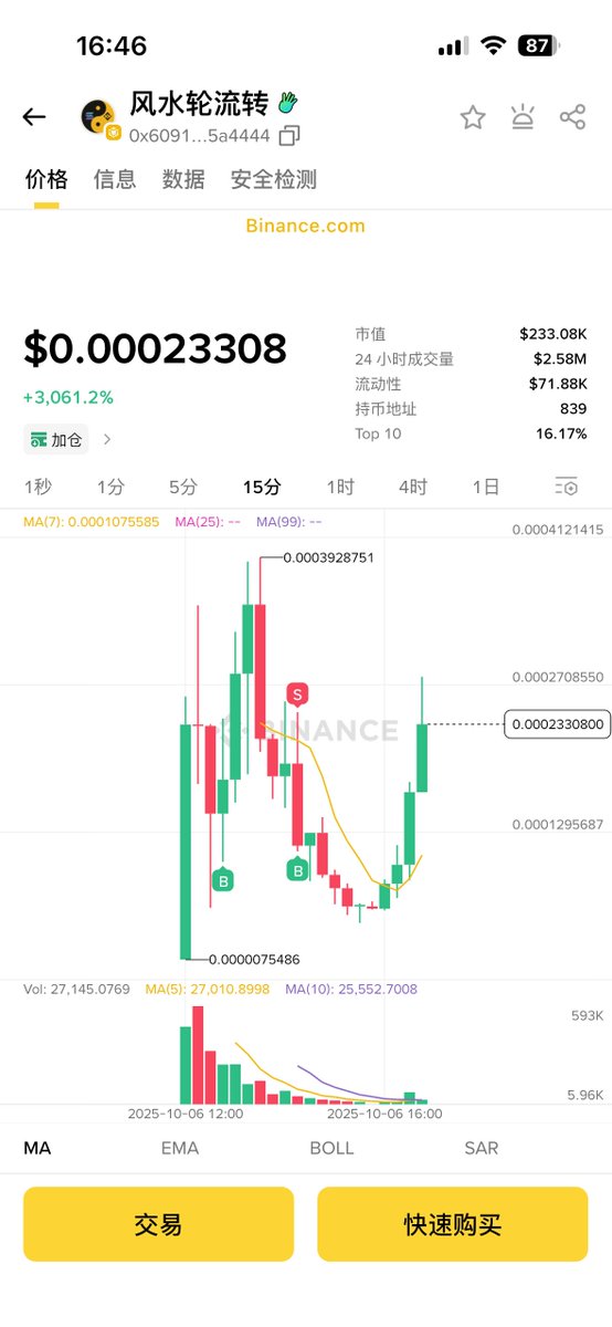 今天我看这个 $W 涨挺好,我看到时候涨25个点,我二话没说,嘎逼我就给干上了,我寻思不能跟前两个币似的看着一直涨了,这次我要勇敢追,这次我要大胆干。