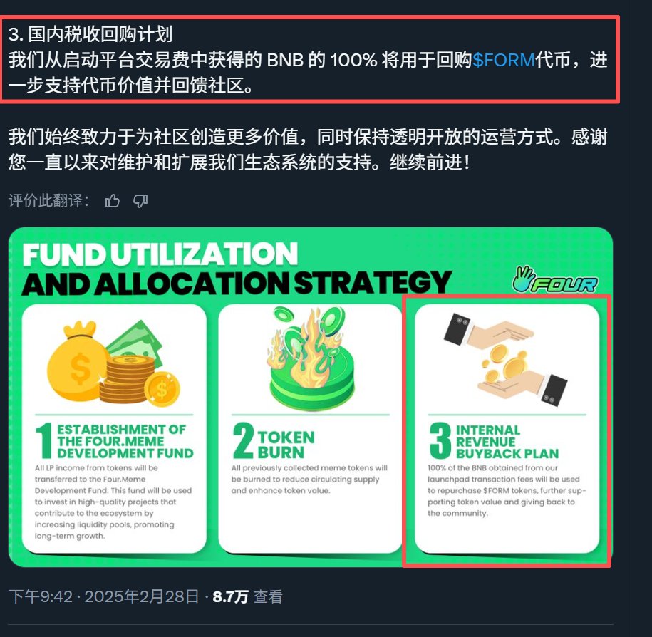 @four_meme_ 不是说回购吗?现在four平台众所周知是最赚钱的平台之一,但是在链上看到有量的 $form 转入了币安,官方不会一边赚钱一边卖币吧!!! 灵魂拷问:回购什么时候开始?