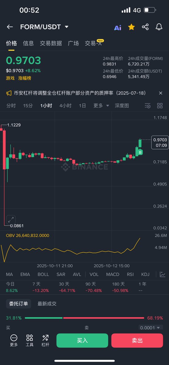我建议还持有 $FORM 的赶紧卖掉吧 没买的也千万不要买了 因为这个币之前不行 现在又有我在 更不可能涨了
