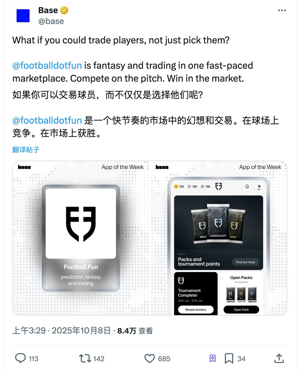 Base 生态最强链游 @footballdotfun 正在改写游戏规则,振奋人心的消息接连而至: