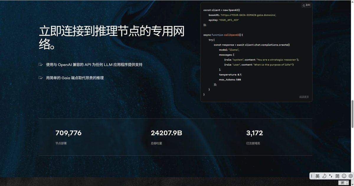 随着区块链技术和人工智能的快速发展,许多项目都试图将两者结合在一起搞叙事,但 Gaia 无疑是做的更好的一个。作为一个去中心化 AI 基础设施项目,Gaia 不仅仅是在谈论未来,它已经通过实实在在的产品和技术布局,向我们展示了去中心化 AI 的巨大潜力。