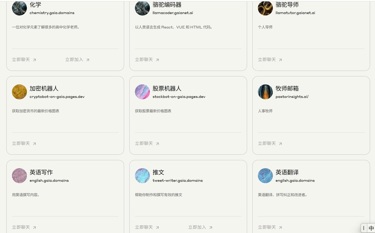 AI 代理生态:Gaia 已经上线了 58 个 AI 代理,涵盖了多个领域的功能,包括自动化写作、股票分析、编程调试、翻译、去中心化搜索等。这些 AI 代理可以在不依赖人类的情况下完成任务,还能在不同的领域中协作,形成一个真正的 AgentFi 经济系统。