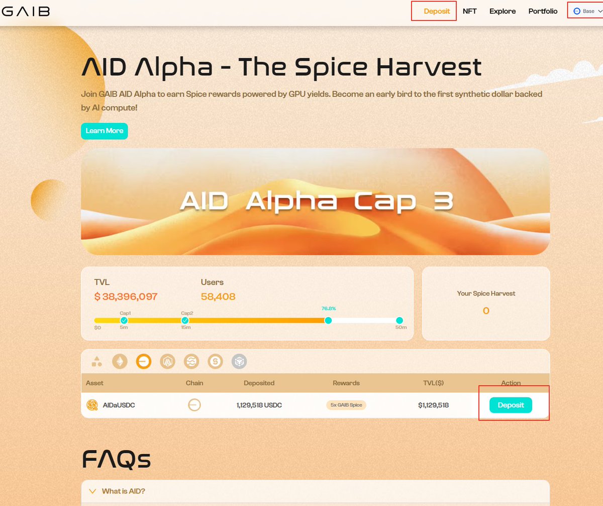 刚刚官方发的文档,大概意思是预存款活动10月30号结束。结束之后, AID和 sAID上线后, $gaib 也会上线。之前参加过spice harvest和 final spice 的活动用户都会获得奖励