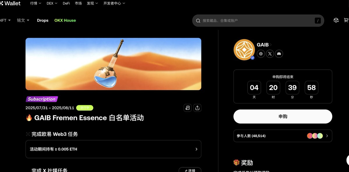Gaib 基金会成立了、今天又出了个签名活动,链接钱包、推特签名即可。
