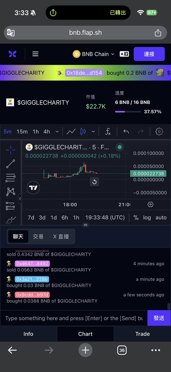 $GIGGLECHARITY 内盘射出来直接飞到最高500k,手速快的10x肯定有了。