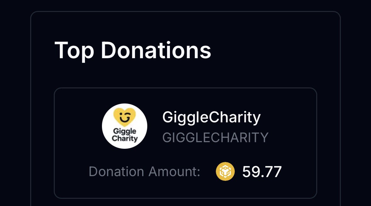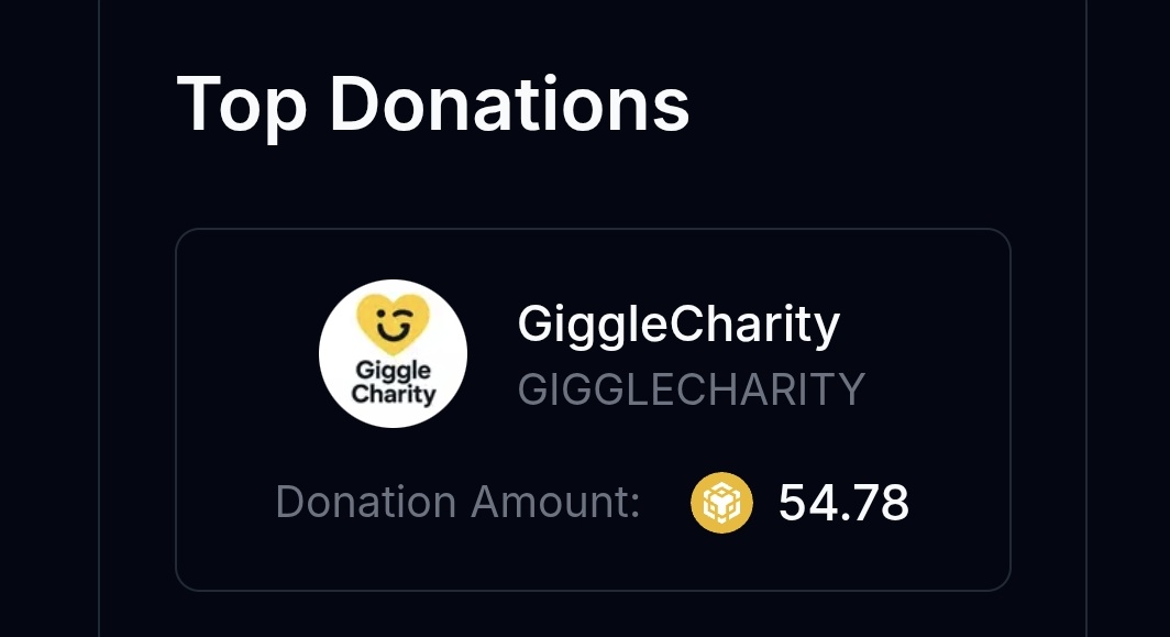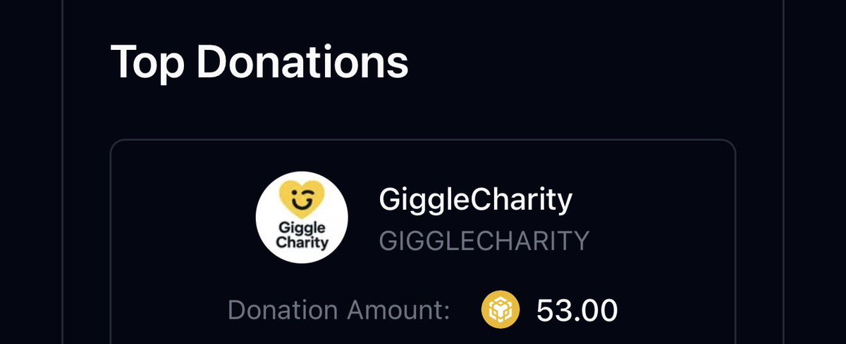 📊 截至目前, $GIGGLECHARITY 已完成 53 枚 #BNB 捐贈,全部進入指定地址: