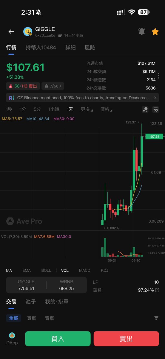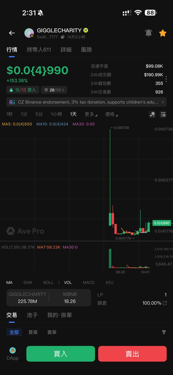 說回慈善幣吧,第一個部署出來響應 @cz_binance 的慈善 meme幣是 $GIGGLECHARITY ,過了約20分鐘後才有人部署了 $GIGGLE 目前是龍一,隨著龍一不斷創下新高,OG 一定會被人撿起來玩,畢竟 OG 只有一個。