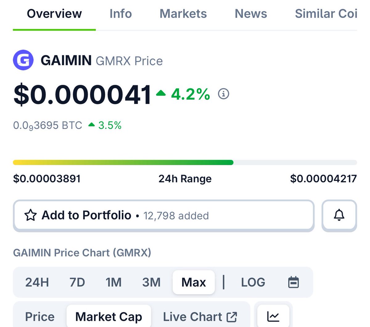 4️⃣📈 $GMRX (@GaiminIo) - $0.001479 (+14%)