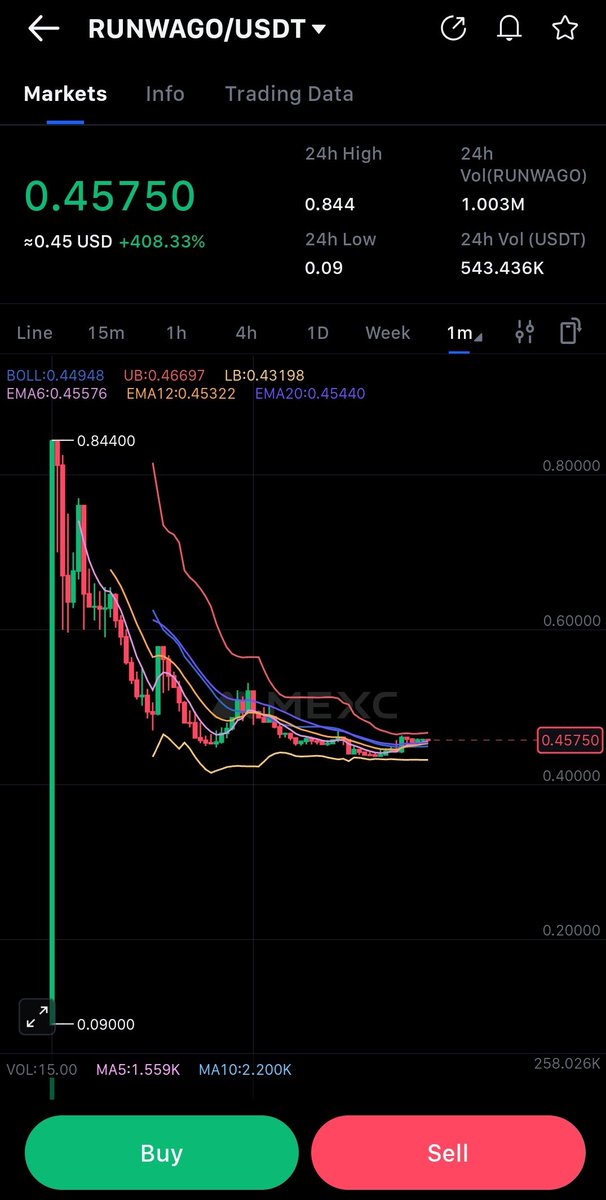 新的Ath $ runwago命中了ATH 0.85,仅30分钟即可100%上升。
