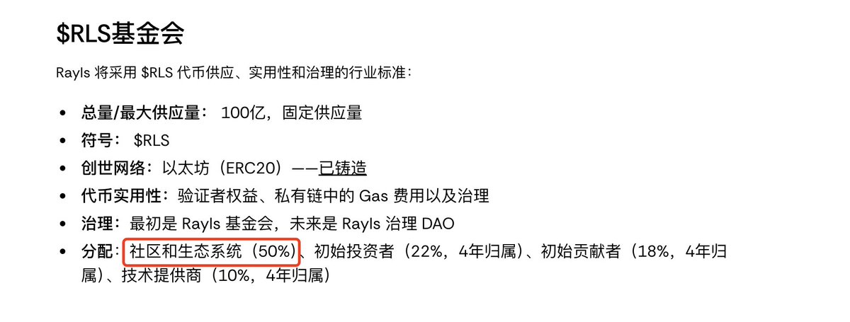 继续一个即将Tge的项目,融资2000多万,Framework 领投的 @RaylsLabs 经济代币学也发布了,50%部分给社区及生态。