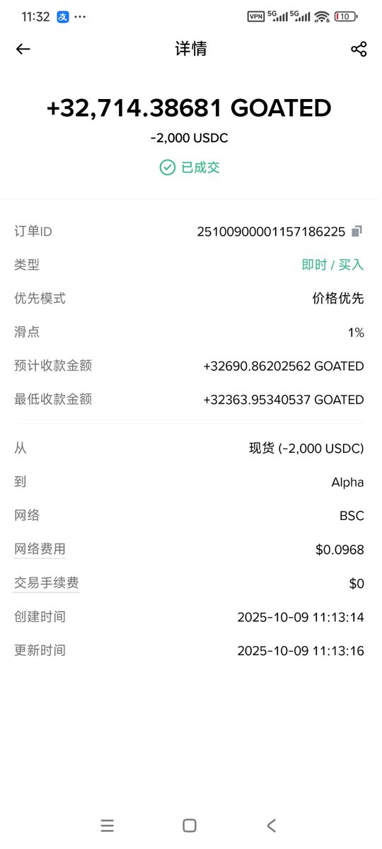 前两天 $GOATED 拉了一波到0.079 ,可惜遇到了BSC链的meme爆火,资金都跑去 #币安人生 $palu ,今天0.06又抄了点山羊,因为好多人在0.12还在拿着,先看0.09-0.1能不能吃到50个点,因为最近玩 #Binance Alpha 新币基本都有1-3倍的涨幅,加上@GOATRollup做的是公链,废了这么大劲,这一个月内肯定会有爆发的点,还是可以期待一下。