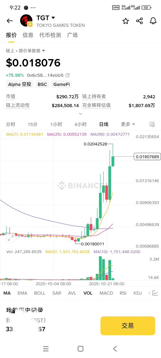 今天没有P成功,好在 $SGC $KOMA 卖到了高点,弥补了 $GOATED 的亏损,多余的盈利又加仓了即将归零的 $TGT
