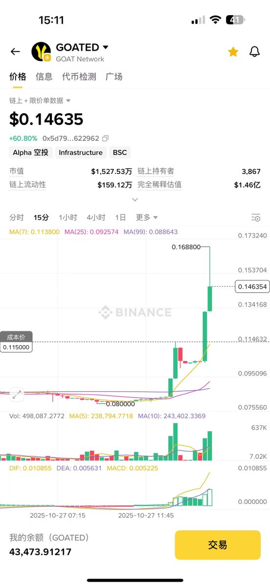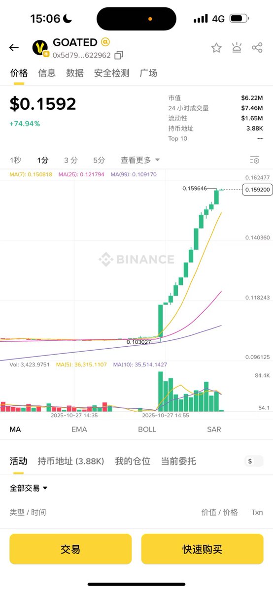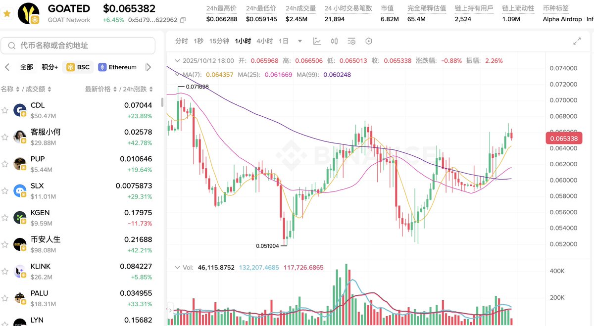 - $GOATED 已在币安 Alpha 上线,符合近期币安对 L2/基础设施方向的跟踪逻辑