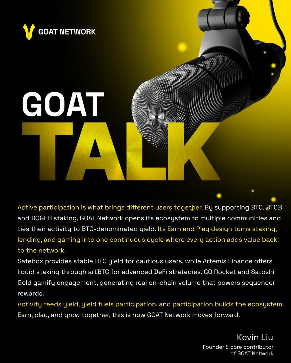最近在加密市场的波动中,$GOATED 代币的表现吸引了不少人的注意。它背后的 #GOAT Network 正在悄悄做一件大事:让比特币不再只是钱包里沉睡的资产,而是变成能持续产生收益的活跃资本。
