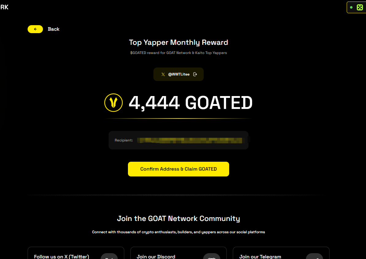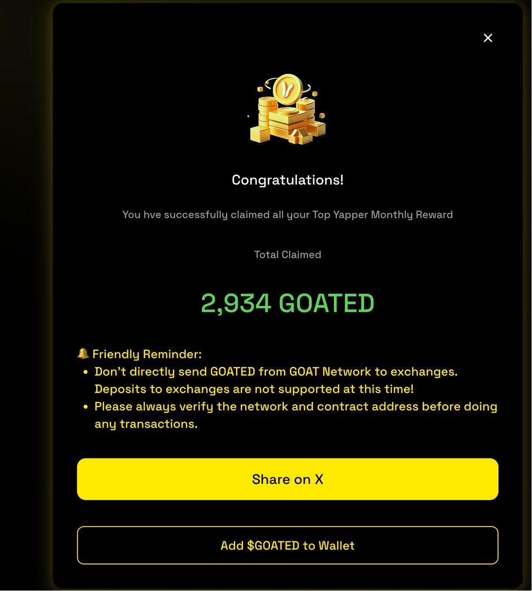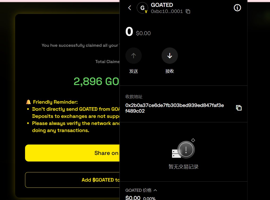 早上刷到 @GOATRollup 和solana可能合作,正好看 $GOATED 月度奖励发了去领了一下,2800个