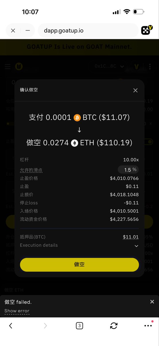 这是 GOAT 网络上第一个原生永续合约 DEX,让 BTC 终于不再只是“数字黄金”。