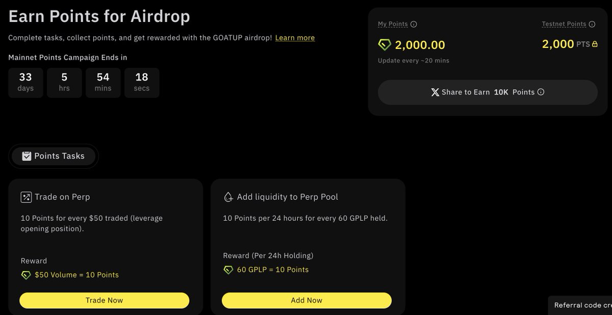 为此,GOATUP 推出了 $GTP 积分激励计划,持续 30 天
