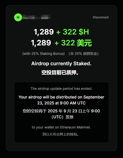 @bitgetglobal上以25%的奖励声明您的$ H staked Airdrop奖励! 在bitget上索取: →去 →选择“通过交流接收” →从交易所列表中选择BITGET →输入您的bitget uid →带钱包的签名 享受!