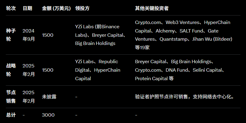 团队由比特币核心开发者 Jeff Garzik 和前 Coinbase 工程师 Max Sanchez 领衔,具备深厚技术背景。2024年9月获 Binance Labs 领投的1500万美元融资,总融资超3000万美元。合作伙伴包括 Binance、HTX 及 Dominari Holdings(特朗普相关公司),增强项目可信度。