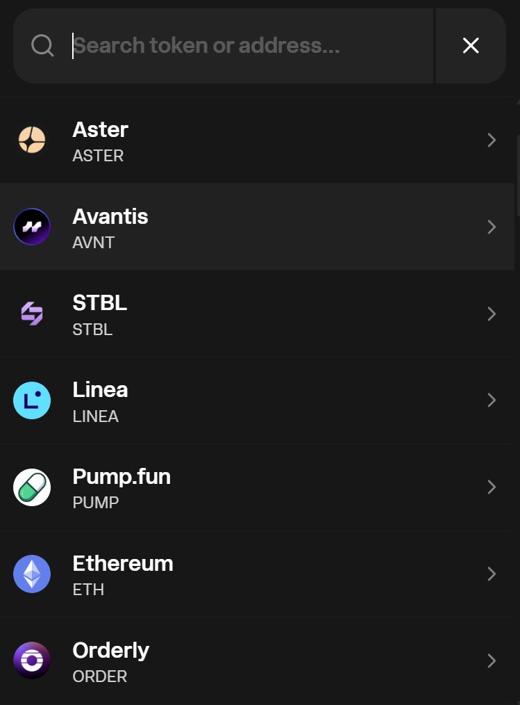 目前Defi上面支持Aster、orderly、stbl、avnt等多个主流币对,让你可以一站式交易,免除跨链烦恼