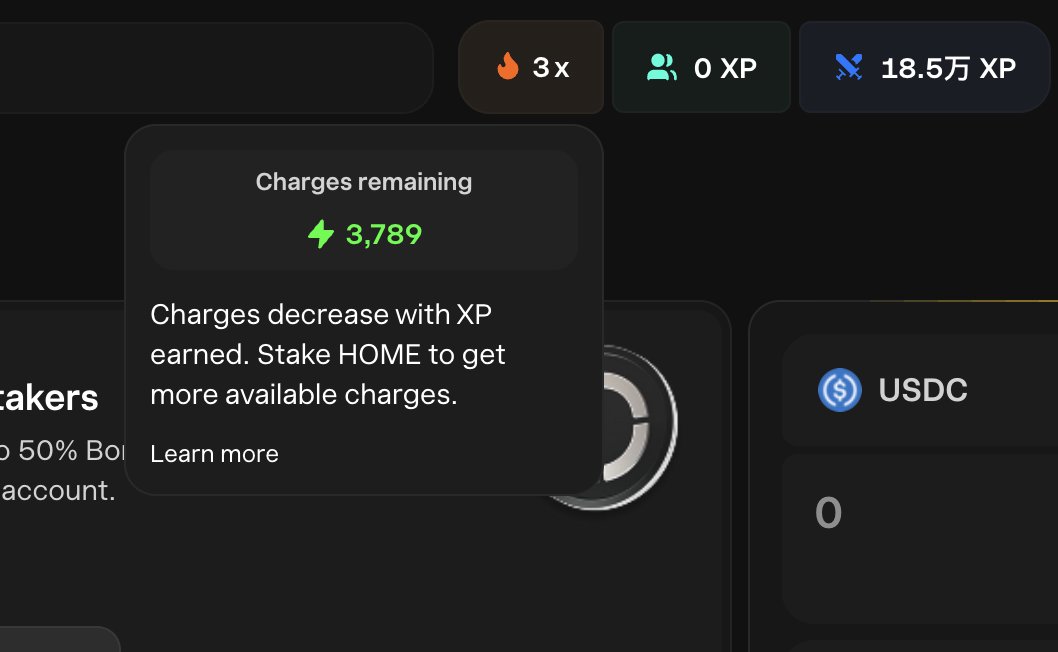 其实 $HOME 的staking机制设计得还是很巧妙。质押 $HOME 可以获得XP倍数加成,而XP又能解锁更多Bonus $HOME 。这形成了一个正向循环,鼓励用户长期持有和参与生态。