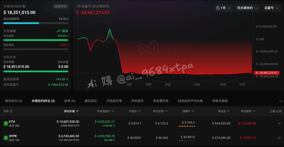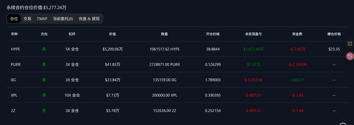 过去一个月麻吉累计在 Hyperliquid 亏损 2696 万美元,此后的开单规模都小了不少,这次能开到近 2000 万刀,又可以加入观察列表了🤣