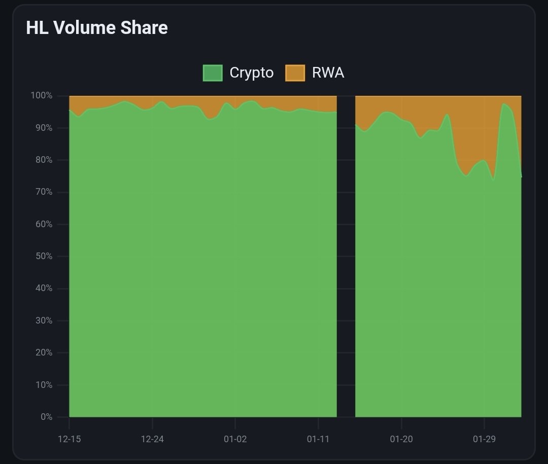 - 進一步顯示 @HyperliquidX (尤其是 HIP-3 市場)在短短時間內,就在商品永續合約領域建立起很強的競爭力。