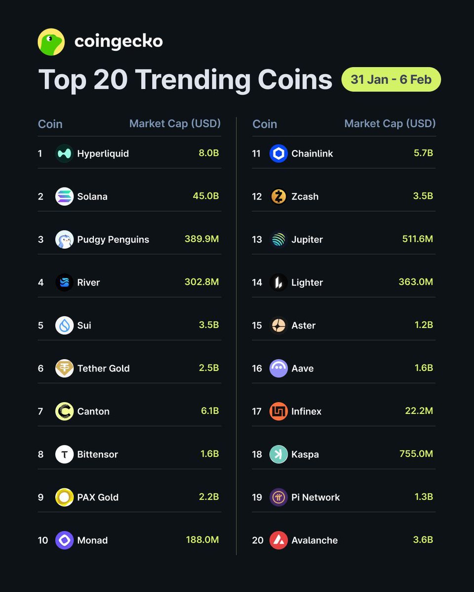 CoinGecko 上最热门的 20 种代币 🦎