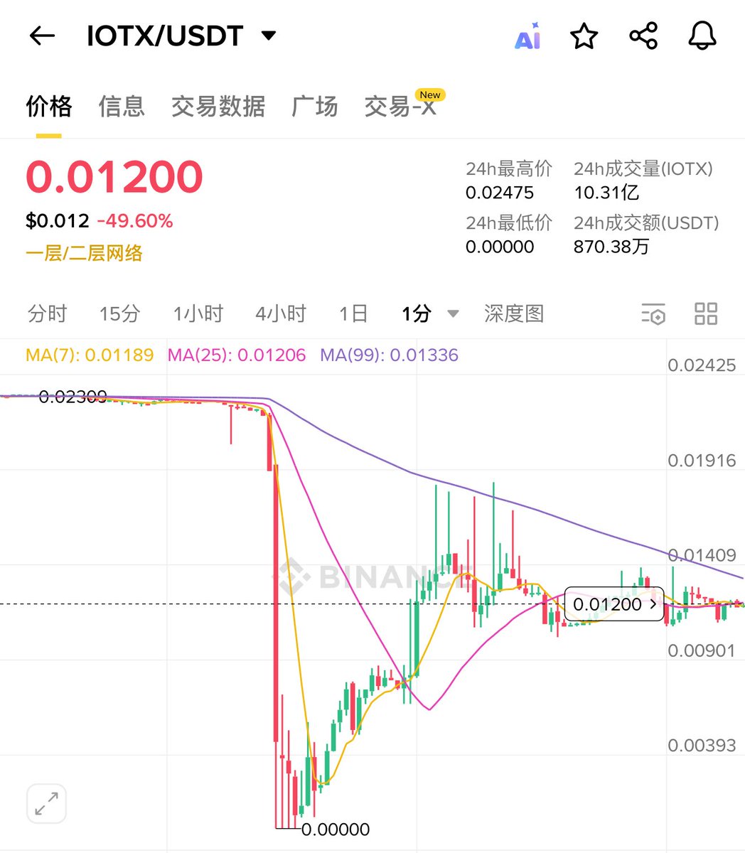 昨天开始感觉 $IOTX 走的有点不对劲,不知道是不是跟一周前这个新闻有关。 当时看到新闻追了后发现没反应小亏跑掉了,这次犹豫半天看这K线实在漂亮又追了个头仓。 如果赚钱了我再认真去调查一下😂😂
