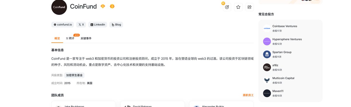 根据 Rotdata 的数据,Coinbase Ventures 是与 Coinfund 合投项目最多的机构,高达 17 次。