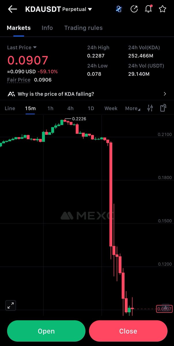 🔍 @kadena_io 核心团队即将关闭,$KDA 下跌约 60%