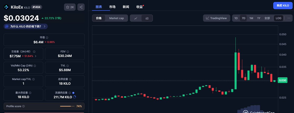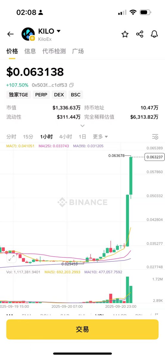 刚刚买入了两万U的 $KILO 我定义这种为土狗dex型MEME😂 因为流通市值才10M,市场非常饥渴。
