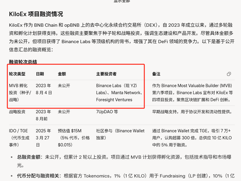 项目背景也不错:成立于 2023 年,获得 Binance Labs 投资,是 BNB Chain 孵化计划 MVB6 的冠军。除了永续合约,KiloEx 现在也全面进入现货市场,率先上线了 Solana 和 BNB Chain 的现货交易,并与 Fourmeme、Monad 等热门生态达成合作,进一步补全版图。