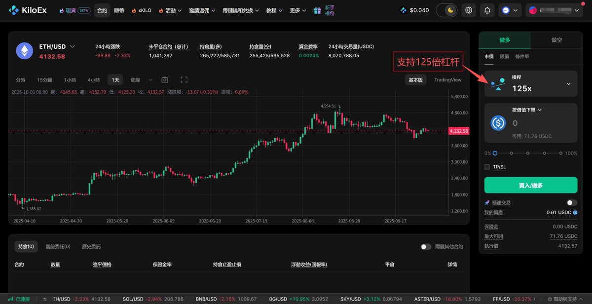 支持多链:目前已支持 BNB 、opBNB、Base 等网络,想搏 Base 链空投的用 KiloEx 刷交易量很合适。